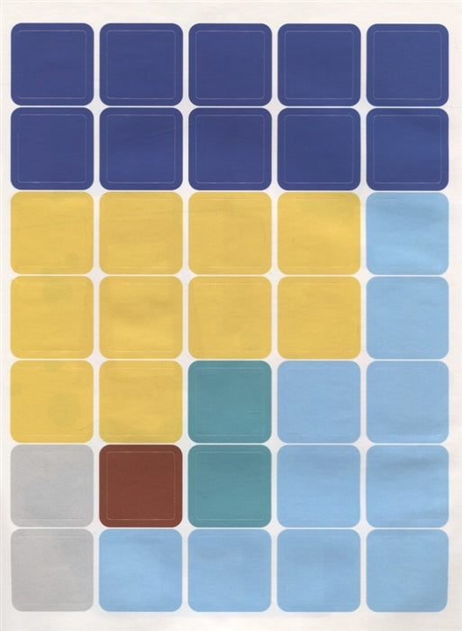 В этой книге 70 наклеек – разноцветных квадратиков. Малыш должен дополнит с их помощью картинки. Это очень просто: покажите ему, что наклейку нужно приклеит в квадратный контур. Если с первой попытки приклеит ровно не получилось – не беда, ведь наши наклейки многоразовые.