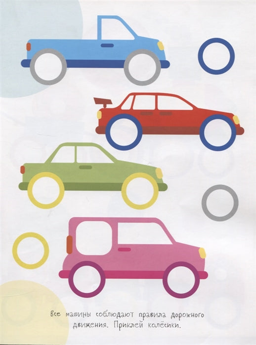 Простые задания с наклейками-колёсиками способствуют развитию мелкой моторики, координации движений, аккуратности, творческого и пространственного мышления, помогают запомнить цвета. Весёлые персонажи наверняка понравятся вашему малышу и сделают игру ещё увлекательнее!