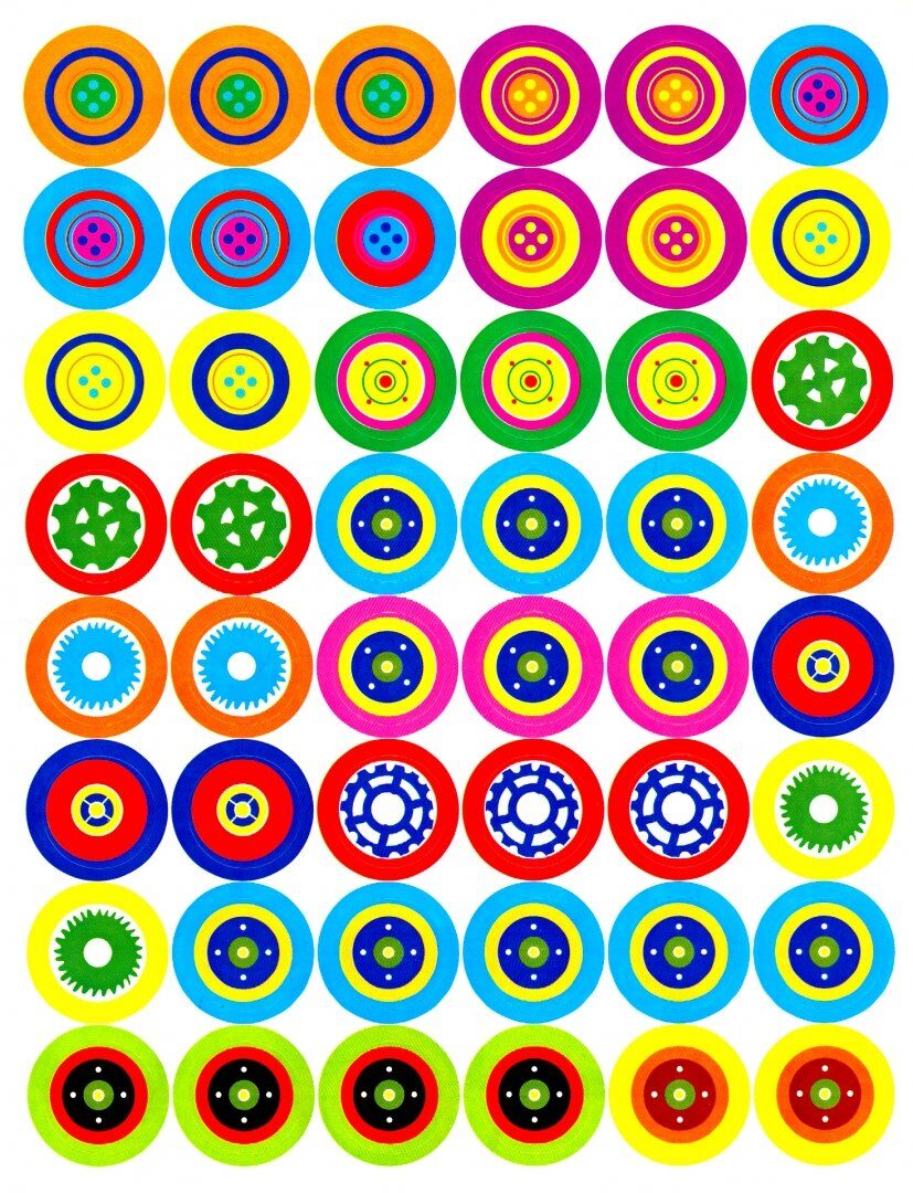 В этой книге 96 наклеек – разноцветных колёсиков. Малыш должен дополнить с их помощью картинки. Это очень просто: покажите ему, что наклейку нужно приклеить в круглый контур. Если с первой попытки приклеить ровно не получилось – не беда, ведь наши наклейки многоразовые.