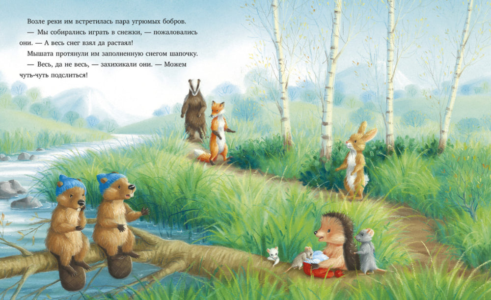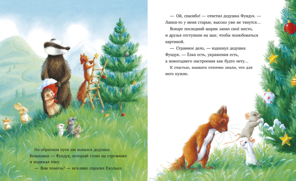 Новый год уже завтра! Елка украшена, подарки приготовлены, но вот беда: в лесу почти весь снег растаял. А ведь мышата так хотели слепить мышевиков! "Без мышевиков Новый год будет ненастоящим", – плакали они. Тогда Ежулька, Заяц, Лиса, Барсук и мышата отправились на поиски снега прямиком на вершину Сосновой горы. По дороге домой друзья помогли дедушке Фундуку украсить снегом иголочки и развеселили угрюмых бобров игрой в снежки. Вернувшись домой, друзья обнаружили, что снега больше не осталось. Исполнится ли заветное новогоднее желание маленьких мышат? Наступит ли Новый год, если в лесу нет снега?