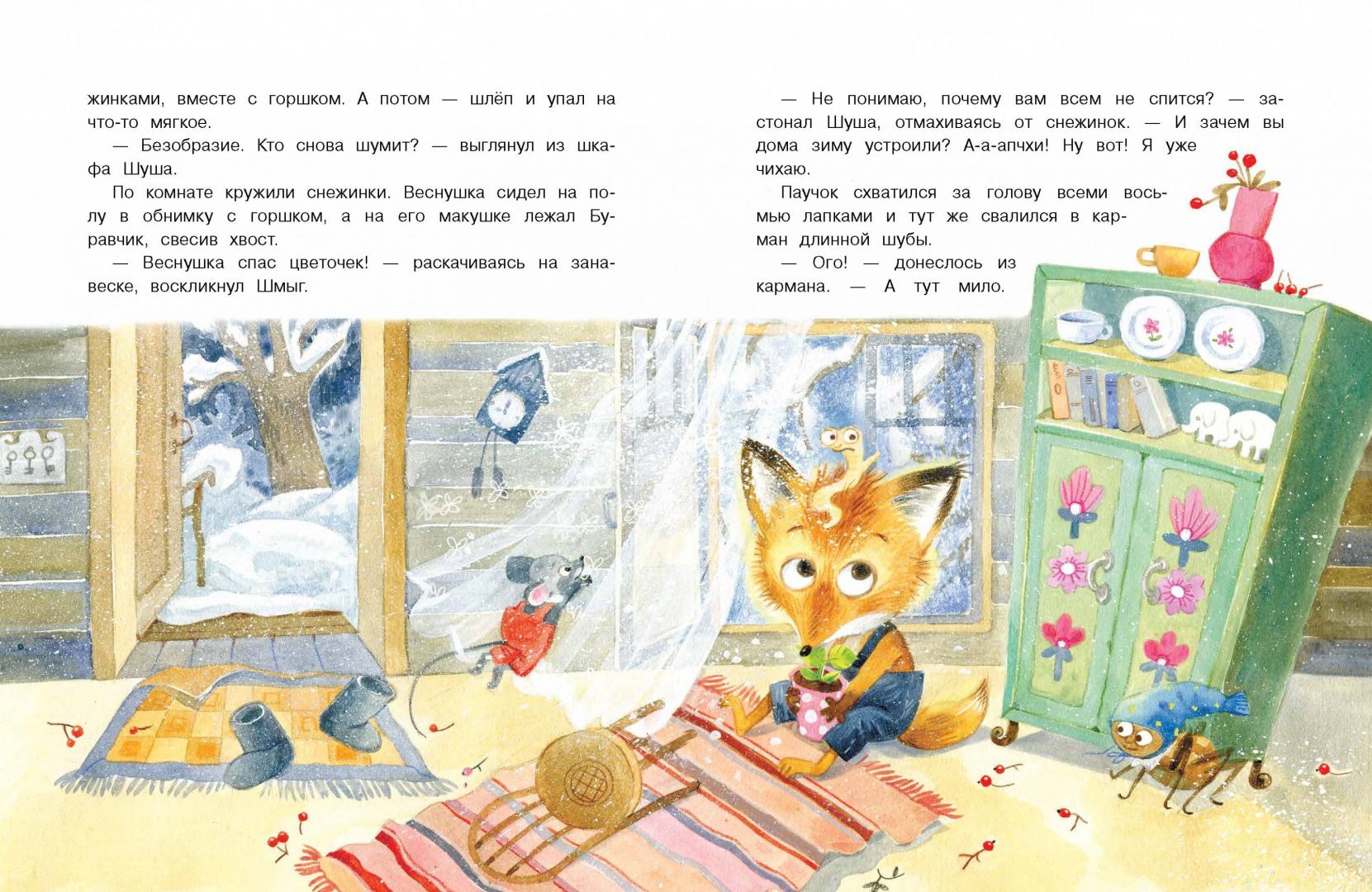И вот в одно прекрасное утро в домике Веснушки появился мышонок Шмыг. Он подсказал лисенку замечательную идею - подарить Дедушке то, чего он никогда не видел: цветок! Ведь зимой снег укрывает землю белым пушистым покрывалом, так что не остается и травинки. Скорее за дело, ведь Новый год уже совсем близко! Получится ли у друзей удивить Деда Мороза?..
