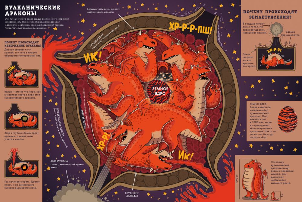 «В этой книжке потрясающий юмор! А разворот с внутренним строением дракона — мой любимый» (редактор Clever).